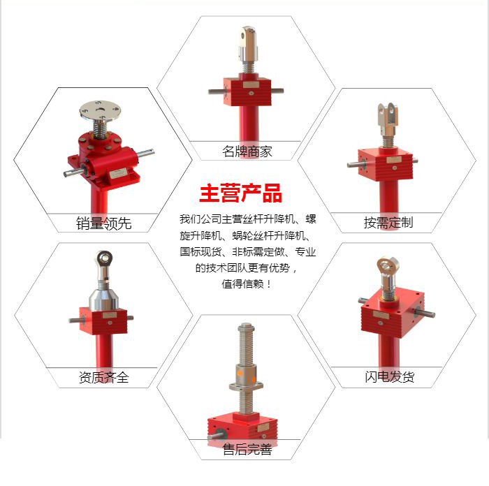 万象城平台,万象城(中国)机械主营的产品,丝杆升降机是其中一款,丝杆升降机分为多种系列,多种系列又分为多种型号,主要的系列有,SJA螺旋升降机、SJB滚珠丝杆升降机、SWL蜗轮螺杆升降机、JW蜗轮丝杆升降机、SJ(HK)蜗轮丝杠升降机、SL锥齿轮丝杠升降机、TP螺旋丝杠升降机、SJ、MA螺旋升降机