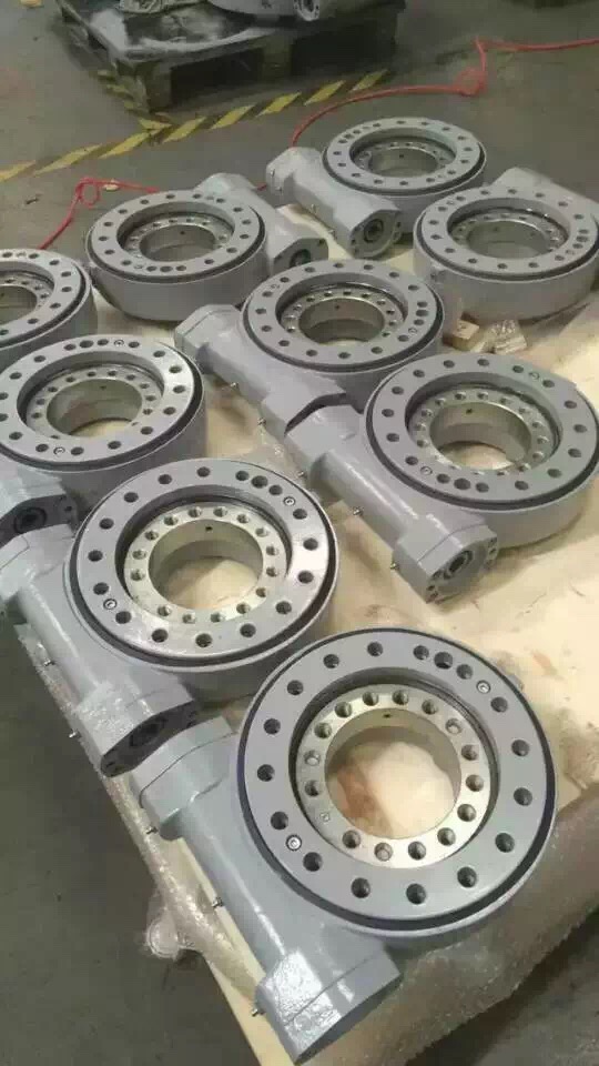 WE回转驱动装置也叫回转支承、回转减速机,是一种新型的回转类产品,通常由蜗杆、回转支承、壳体、马达等部件构成。由于核心部件采用回转支承,因此可以同时承受轴向力、径向力、倾翻力矩。回转驱动跟传统的回转类产品相比,具有安装简便、易于维护、更大程度上节省安装空间等特点。